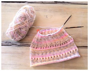 Motoring along (pardon the pun) and my hat has become a sleeve. If I close my eyes, I can picture the jumper it would make. It would be a nice one: cheerful, unusual, pretty. Maybe my next project should be something larger and longer? If I start now, I might just finish it in time for winter. I only get a short amount of car time each day, between 30-60 minutes. At that rate, a jumper could take months. Probably better to stick to smaller things, things that I can turn out in a matter of weeks.